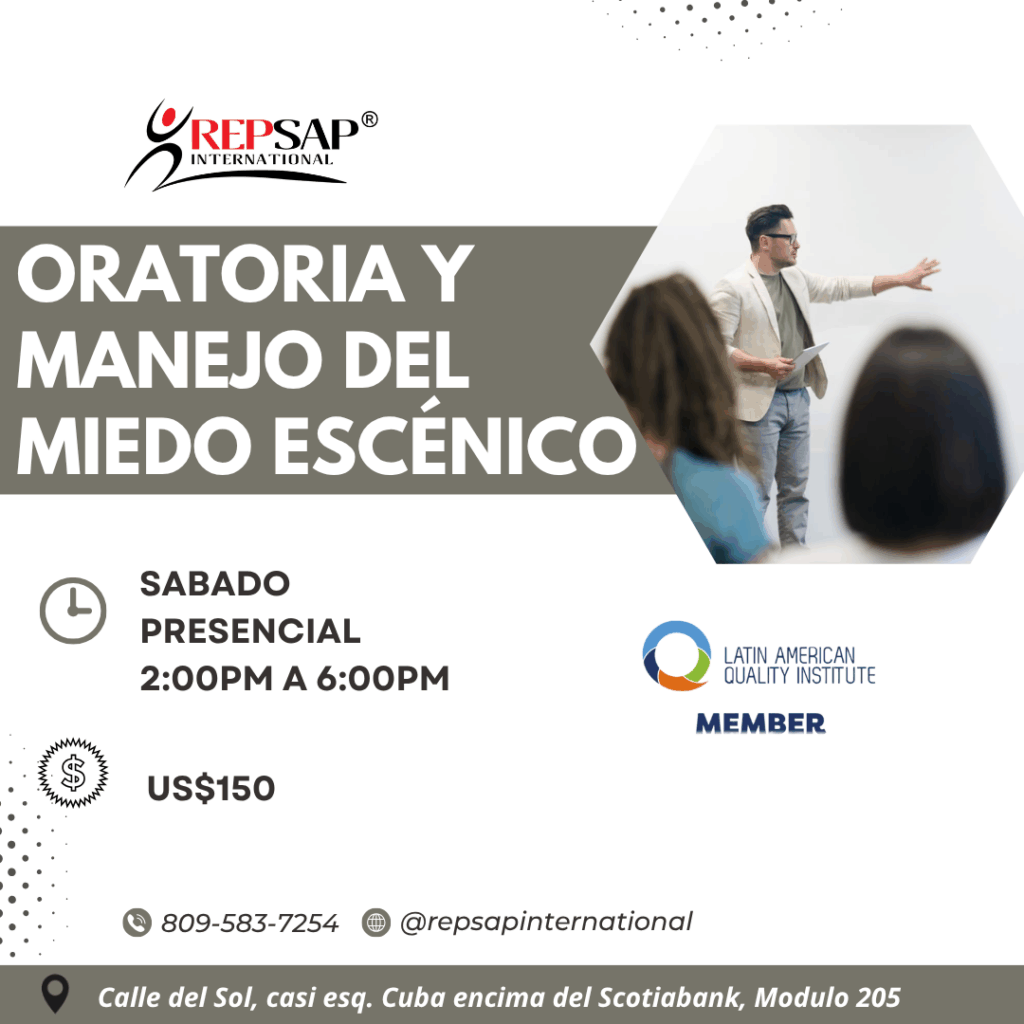 Dotar a los participantes de técnicas y herramientas necesarias para hacer presentaciones efectivas controlando el miedo escénico. Controlar el miedo escénico, Aprender a improvisar discursos ante el público. Aprender a redactar un discurso, Pronunciar discursos ante el público, Conocer técnicas para presentar a una persona en un acto público, Organizar y dirigir un acto protocolar.